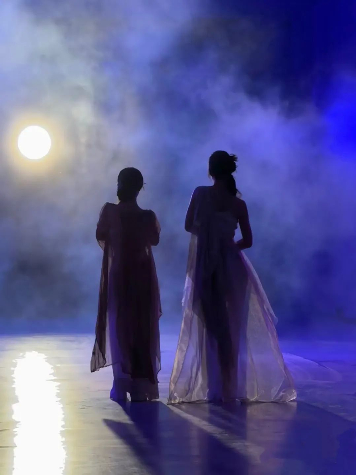 表演《天若有情》时,两人动情相拥上台前的一晚,月亮很大,她们坐在宿舍前的马路牙子上,对着月光许下了“留下一个好舞台”的愿望。