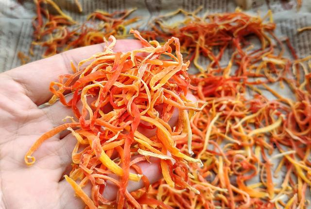 ③用干果机低温烘干。这是最传统的晾晒方法。将木瓜丝放在太阳底下晒到半干,大半天时间就晒好了,环保省电。但是现在好些人因为居住在城市的缘故,没有条件在阳光底下晒东西,而且室外灰尘较多,这样晒干的木瓜丝必须清洗过才能食用。如果制作过程中处理不当,这些接触过水的的木瓜丝就容易坏掉,存放时间不长,尽可能在几天内吃完。