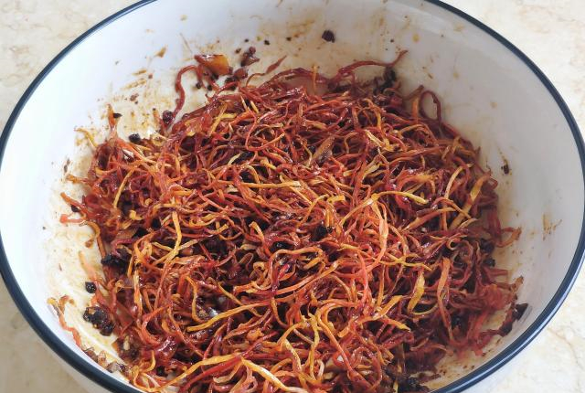 前两天,外婆打电话喊我回娘家一趟。原来菜园里结了不少青木瓜,外婆想将青木瓜都摘下来,去皮切丝晒干,然后用蒜蓉、小米椒、生抽、冰糖、米酒与木瓜丝搅拌均匀,腌制密封保存在老坛中。经过一段时间的发酵,慢慢腌制成脆爽微辣、咸甜开胃的木瓜丝。小时候吃饭没胃口,外婆常给我们准备的开胃小菜,也是一种我们小时候很喜欢的小零食。记得那时我不怎么能吃辣,却控制不住吃了一条又一条的木瓜丝,越吃越过瘾。外婆看我被辣得可怜,还特别准备多一些不辣的酱菜风味木瓜丝,口感脆爽、咸甜适口,每隔一段时间不吃总会怀念这个味道。