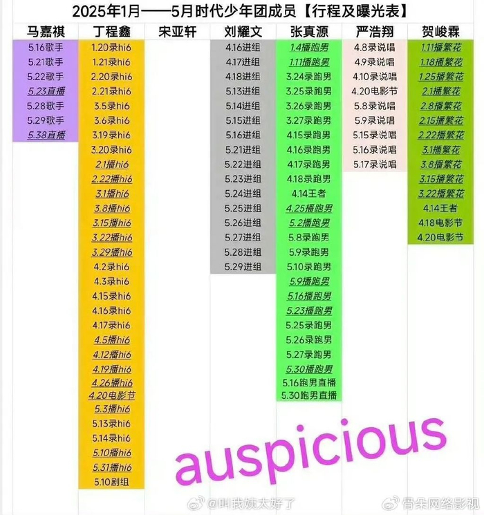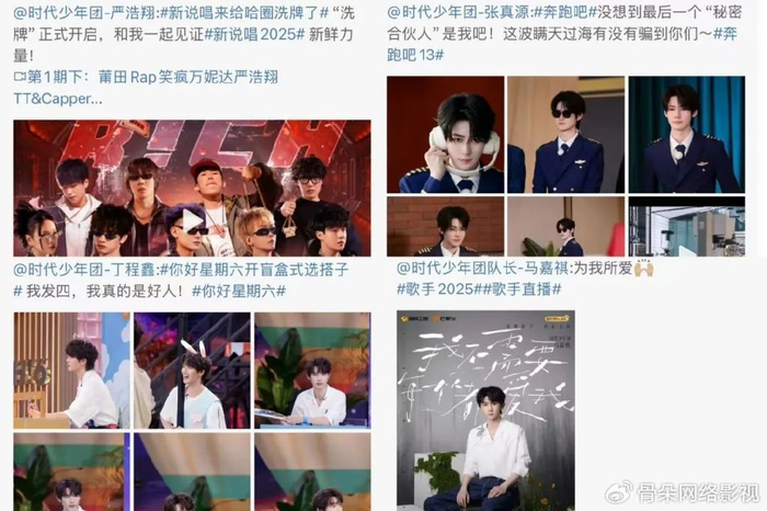 另一方面,时代峰峻这种高集权的公司,本就善于内容配比,擅长为不同能力标签的艺人配备合适的平台。镜头感强的丁程鑫适合访谈类节目,性格好但人气低的张真源被安排在国民度级平台,而“唱跳俱佳”的主推艺人如马嘉祺、宋亚轩,则可自由在综艺与音乐节目中流转。这种定向投放的策略,也正在帮助时代少年团、登陆少年在曝光中持续生产存在感。