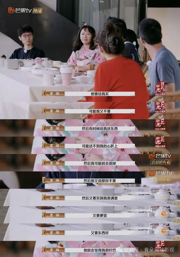 如果把麦琳放进宫斗剧里,她估计都活不过预告片;但如果把麦琳放到家庭剧里,她绝对是整部剧集的最大亮点。就像有人曾质疑过,麦琳是不是拿到了祭天剧本,要用自己的名声换取泼天的流量?网友却真诚回答:“你要相信,如果有剧本,现在的电视剧不会这么难看。”