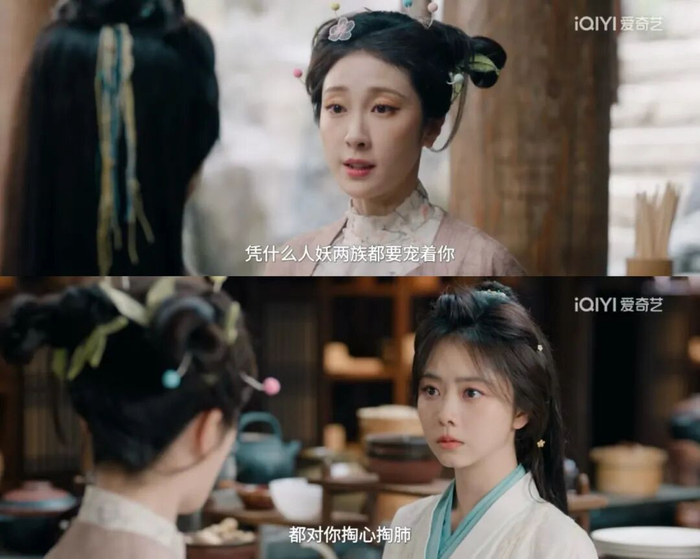 妖怪们的大本营万妖谷天真浪漫、童话感十足的同时,人间的现实就显得有些骨感。肖瑶在人间时生活窘迫,一个蛋都要和父亲分着吃,套用当下流行的说法,她的生存状态已经有点逼近斩杀线了;男二秉烛大人(汪铎 饰)看似是风光无限的斩妖使头头,其实既要受心怀不轨的下属掣肘,还要面对顶头上司皇帝摊派下来的高难度任务,单元案件里的人物也各有各的困境。复杂的人间生态多了几分扎根现实的真实感,也和万妖谷的童话乌托邦形成了鲜明的对照。