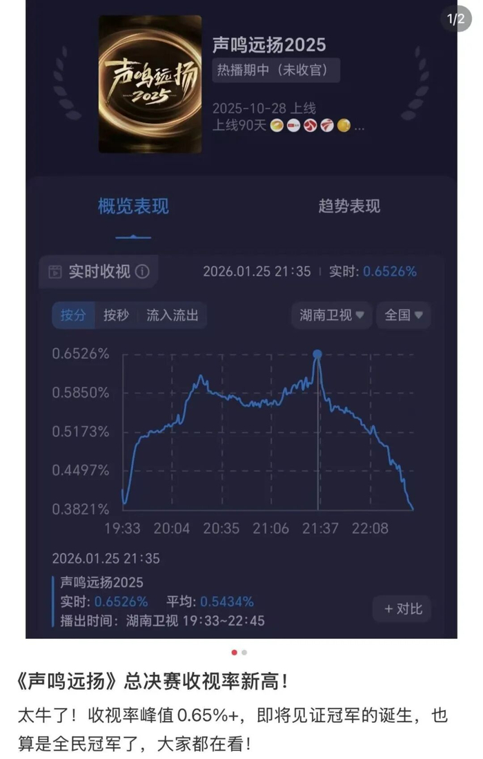 在这样的背景下,音综还能不能既好看,又好用?所谓“好看”,是观众愿意守着直播,也愿意在节目结束后继续讨论;所谓“好用”,是行业能够从中看到清晰、可持续的生产逻辑,而不是只能复制一次的偶然成功。《声鸣远扬2025》给出的答案,至少在数据层面,是相当明确的。