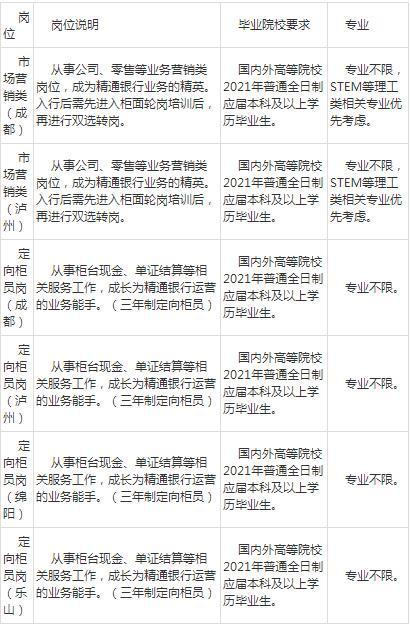 招聘岗位:六大岗位,工作地点分别位于:成都、泸州、绵阳、乐山