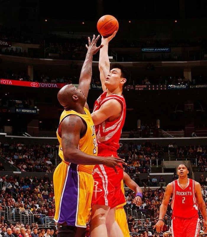 姚明,这位来自东方的长城,拥有柔和的手感、出色的脚步移动和卓越的中距离投射能力,他的每一次进攻都显得那么从容不迫,仿佛是在用精准的计算挑战着奥尼尔的防守极限。然而,在与奥尼尔的直接对话中,尽管姚明展现出了极高的竞技水平和不屈不挠的斗志,但在经验、力量和爆发力的比拼上,还是略逊一筹。