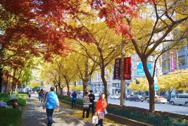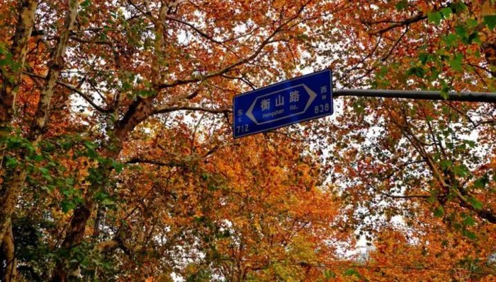 深秋的番禺路美得像画一般,绿的、黄的、红的梧桐叶,层层叠叠,都挂在枝头。