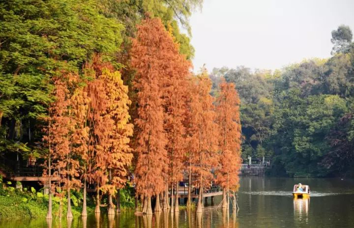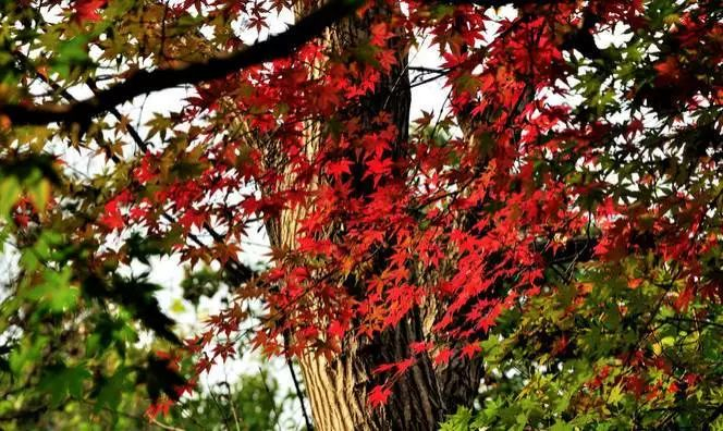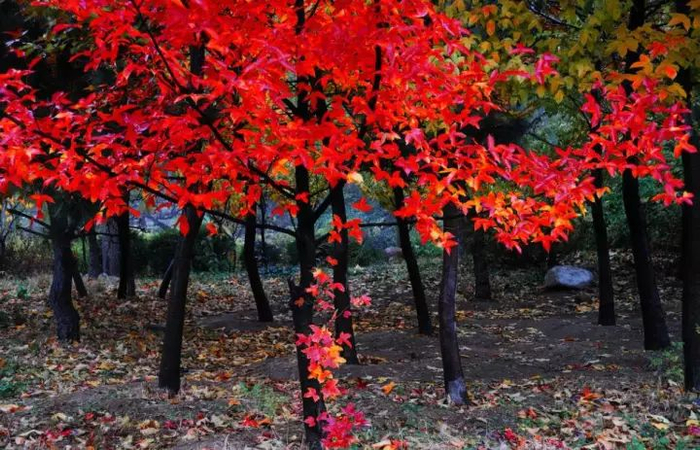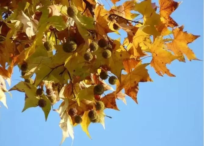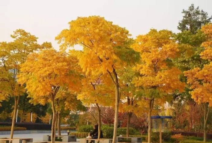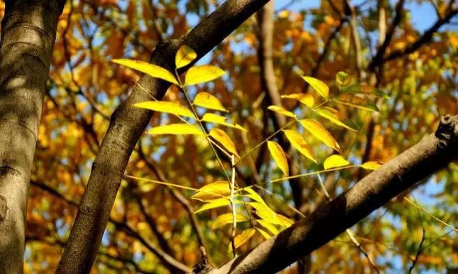 金黄的银杏、无患子,火红的枫叶、乌桕叶……