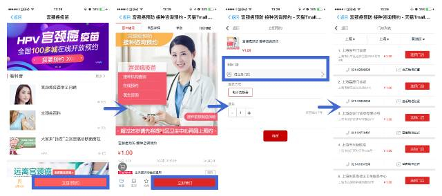 ④ 在宫颈癌疫苗页面点击“立即预约”
