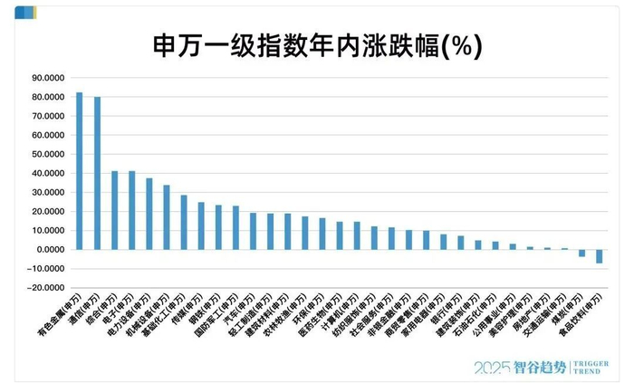 金银铜价格纷纷在年内多次创下历史新高。数据显示,截至12月19日,申万有色金属指数年内涨幅已达82.23%,在全市场所有行业中领跑,甚至超越了通信、电子等长期备受瞩目的科技赛道。(数据来源:Choice,时间截至2025/12/19)