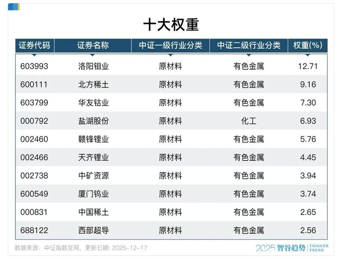 稀有金属ETF (562800)则跟踪中证稀有金属主题指数,覆盖战略金属核心赛道,囊括锂、稀土、铜、钴、钨等更为广泛的战略金属赛道。