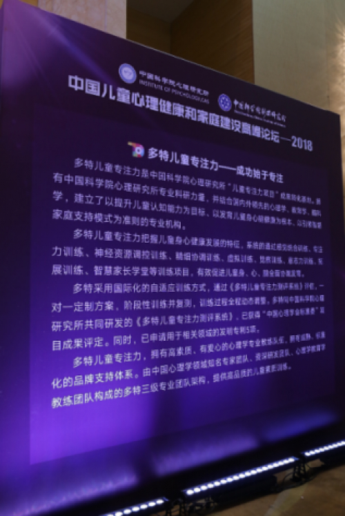 作为中国科学院心理研究所“儿童专注力项目”成果转化基地——福建中科多特教育投资有限公司旗下素质训练品牌——多特儿童专注力,拥有中国科学院心理研究所专业科研力量,并结合国内外领先的心理学、教育学、脑科学理论,建立了以提升儿童认知能力为目标、以发育儿童身心健康为根本、以引领智慧家庭模式为准则的健康科技转化机构。为了更有效地落实中国科学院心理研究所的科技成果,中国科学院心理研究所傅小兰所长、中国科学院海西研究院曹荣院长、福建省科技厅游建胜副厅长、福建中科多特教育投资有限公司张修强董事长四方就成立“中国科学院心理研究所福建应用发展中心”正式完成揭牌仪式。