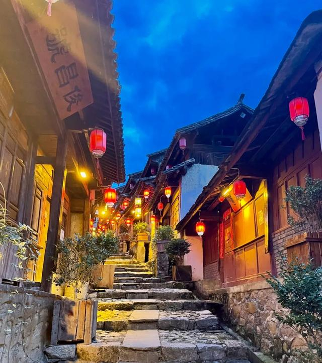 层次突出、顺山而建的楼梯街夜景“半为山村半为市,可作农舍可作商”,是对鲁史古镇再确切不过的概括。漫步古镇,穿梭于纵横交错的三街七巷,酿酒馆、染布坊、酱油坊等手工作坊应有尽有;来往于古镇的“楼梯街”,火红的灯笼映照着古韵犹存的砖瓦房,一块块被马蹄踏穿的石板,印刻着千年马帮的文化。高墙窄巷,古朴幽远,往日的回忆与传说,沉淀在斑驳的砖瓦廊檐之中,酝酿出别样的岁月余味,让人仿佛穿越千年历史,置身于茶马互市的时代,聆听到远处传来马蹄和铃铛的浅唱低吟……