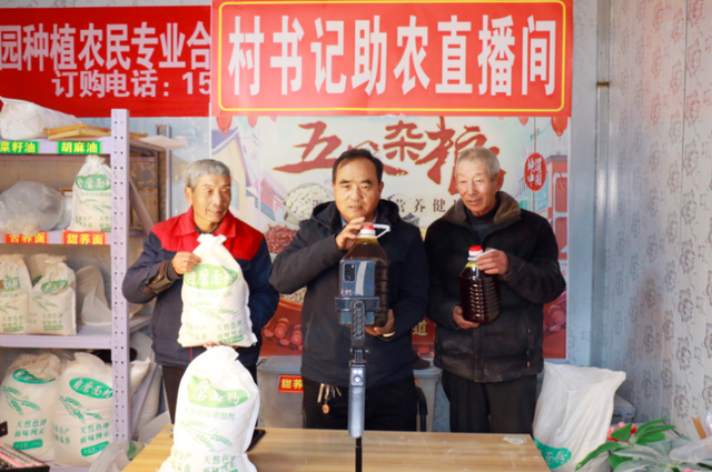 高举鹏(中)带着村民在“村书记助农直播间”开展乡村农特产品直播带货活动。李璇 摄 手机成了“新农具”,数据成了“新农资”,直播成了“新农活”。从会议室到直播间、从脸红心跳到侃侃而谈,安定区的一批村干部正悄然变身“新农人”,靠一部手机,操着一口亲切地道的“乡言乡语”,以村播为桥,用流量为村民们叩开致富之门,让本地农产品出村上网,也让乡村振兴之路越走越宽。