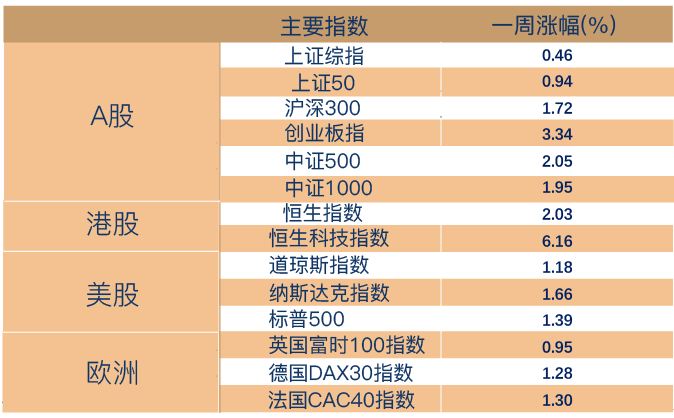 每周市场回顾,各大指数表现一目了然