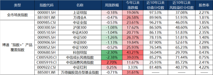 (数据来源:wind,截至2025年11月14日,风险提示:我国股市运作时间较短,不能反映证券市场发展的所有阶段。)上周A股震荡调整,主要宽基指数大部分收跌,风格上,成长延续调整,前期滞涨的消费风格表现相对亮眼,中信消费风格指数上涨2.70%,红利风格依旧抗压,中证红利指数微涨0.25%。基金指数方面,万得偏股混合型基金指数上周跌幅0.71%,年内收益31.61%。