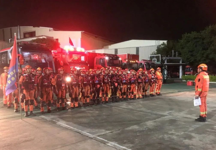 6月16日晚,汕头市消防救援支队接省消防救援总队指挥中心调度令后,立即启动抗洪抢险救援跨区域增援作战预案,共调派59名消防救援人员、11辆消防救援车辆和9艘消防舟艇,连夜赶赴梅州市梅县区集结。