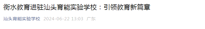 6月22日,汕头育能实验学校证实了该消息:衡水教育将落地汕头育能实验学校。