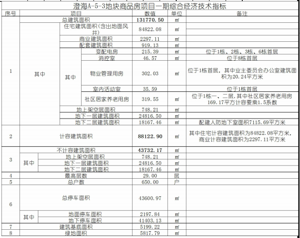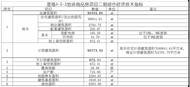 规 模:5栋27-29层住宅楼,2层地下室,总建筑面积131770.50㎡,总计容建筑面积88122.90㎡