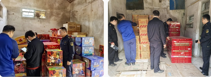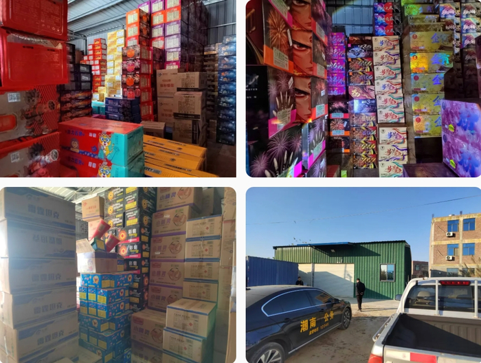 1月8日,根据省应急管理厅移交线索,市、区两级公安、应急部门联合开展核查处置,在陈店镇福谭村一无名沙石场内查获两个非法储存烟花爆竹的铁皮仓库及一部运输车辆,现场扣押非法烟花爆竹一批,当场抓获涉案司机靳某。经公安机关深挖扩线,查明涉案嫌疑人蔡某自2025年12月起,多次从外省非法购入烟花爆竹运至我市储存销售。目前,公安机关已将该案立为非法经营案侦办,依法对蔡某、靳某实施刑事拘留,案件正在进一步审理。