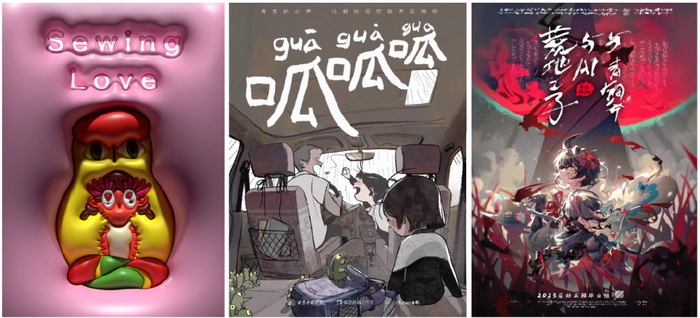 在B站,我们可以看到《Sewing Love》这样极致写意表达情绪的海外毕设;《呱呱呱》这样探讨原生家庭“标杆效应”的人文故事短片;甚至还有《荒地之子与AI与青铜斧》这样用Live2D制作、神秘诡谲的“OC动画”。