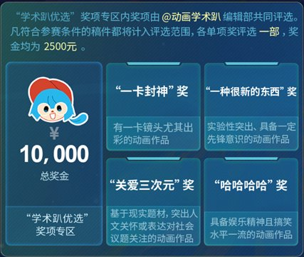 而在今年,动画学术趴成为了小宇宙的深度合作伙伴。我们设立了「学术趴优选」专区,独立评出了4个“奇奇怪怪”,又很符合动画人特征和喜好的奖项。