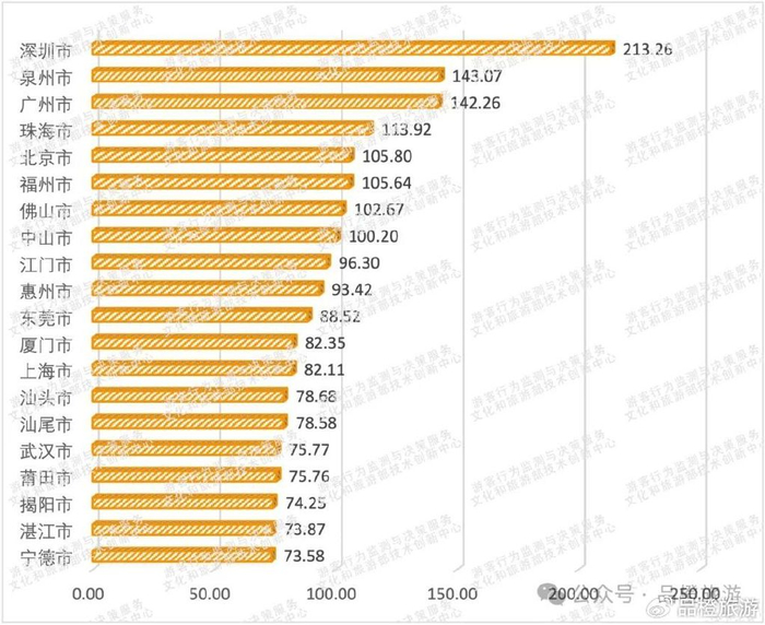 根据技术创新中心的数据,春节假期期间,入境深度游(指来自境外并在大陆城市停留6小时以上的游客)大数据显示,排名前20的热门城市共接待入境深度游客311.7万人,平均每座城市接待约15.6万人。入境深度游客量排名前三的城市分别是深圳、泉州和广州。有58%的入境深度游游客停留时间达3天以上。