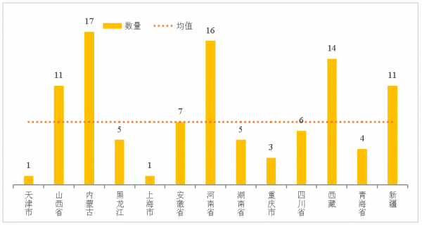 河北省数量最多,达到18家,其次是内蒙古自治区为17家;河南省、西藏自治区则分别为16家和14家;山西省、新疆自治区亦超过10家,均为11家。其余新增景区分布在安徽省(7家)、四川省(6家)、黑龙江省(5家)、吉林省(5家)、湖南省(5家)、青海省(4家)、重庆市(3家)、天津市(1家)、上海市(1家)。其余省份(自治区、直辖市)暂无新晋4A级旅游景区名单公布。