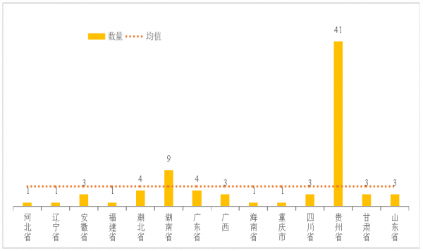 贵州省数量遥遥领先,达41家;湖南省新增9家,位列其次;湖北省、广东省各新增4家;安徽省、山东省、广西自治区、四川省、甘肃省各新增3家。其余新增饭店分布在河北省、辽宁省、福建省、海南省、重庆市(各1家)。其余省份(自治区、直辖市)暂无新评定四星级旅游饭店名单公布。