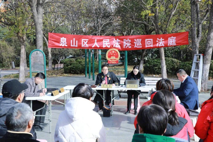 近日,江苏省徐州市泉山区法院将审判庭“搬”进辖区风华园小区广场,公开审理一起交通事故责任纠纷案件。