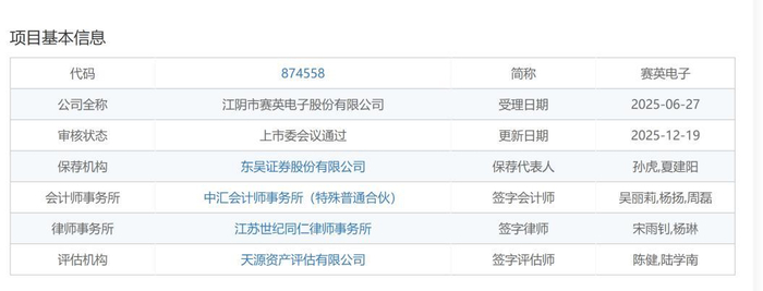 近日,江阴市赛英电子股份有限公司(以下简称“赛英电子”)北交所IPO审核状态更新为“上市委会议通过”。该公司在审议会议现场被问询的主要问题包括封装散热基板业务毛利率是否存在下滑的风险、与主要客户合作的稳定性及被替代风险、选聘黄振宇担任独立董事是否符合相关规定等。
