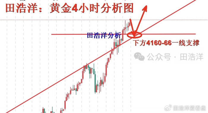 从4小时行情走势来看,目前下方关注短期支撑4200-4196一线支撑,重点关注4160-4166一线关键支撑,多头强势上涨不言顶,操作上以回踩做多为主,中间位置一律多看少动谨慎追单,耐心等待关键点位进场。具体操作策略我会在盘中提示,及时关注。