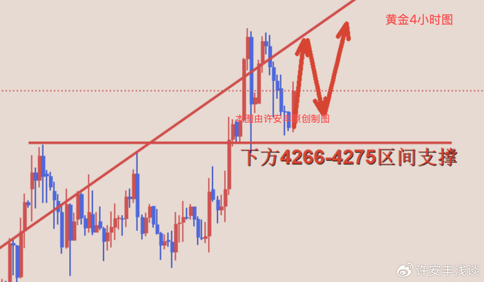 方案二:金价4286-95区间干多处理,损点4265位置,方向看4345-4340区间内。