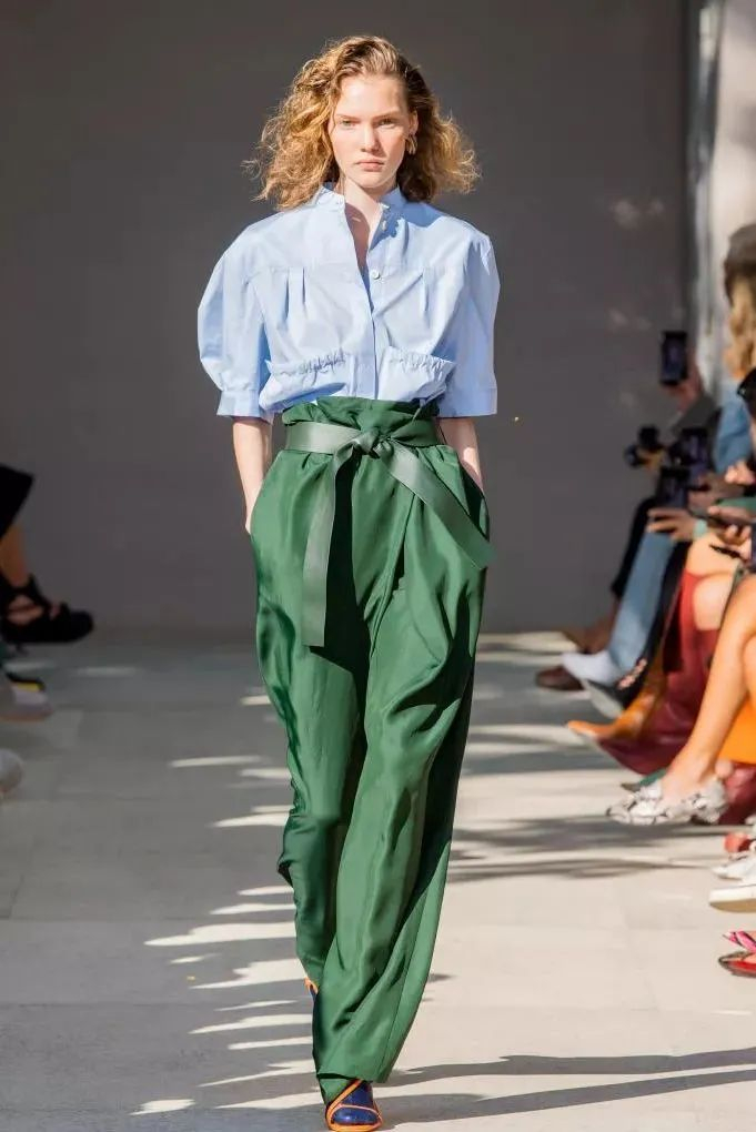 ①用同样饱和度高的下装搭配,并注重配饰颜色和款式的灵活度,让整体穿搭活泼和谐。