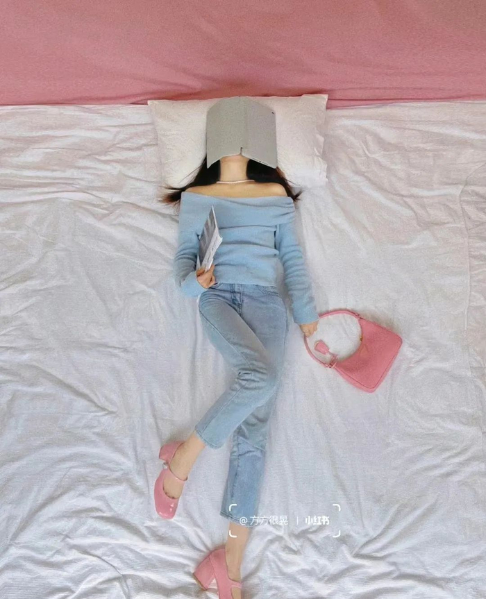 如果你对于大面积穿粉+蓝不是很有把握的话,那不妨试试从单品或者配饰入手。
