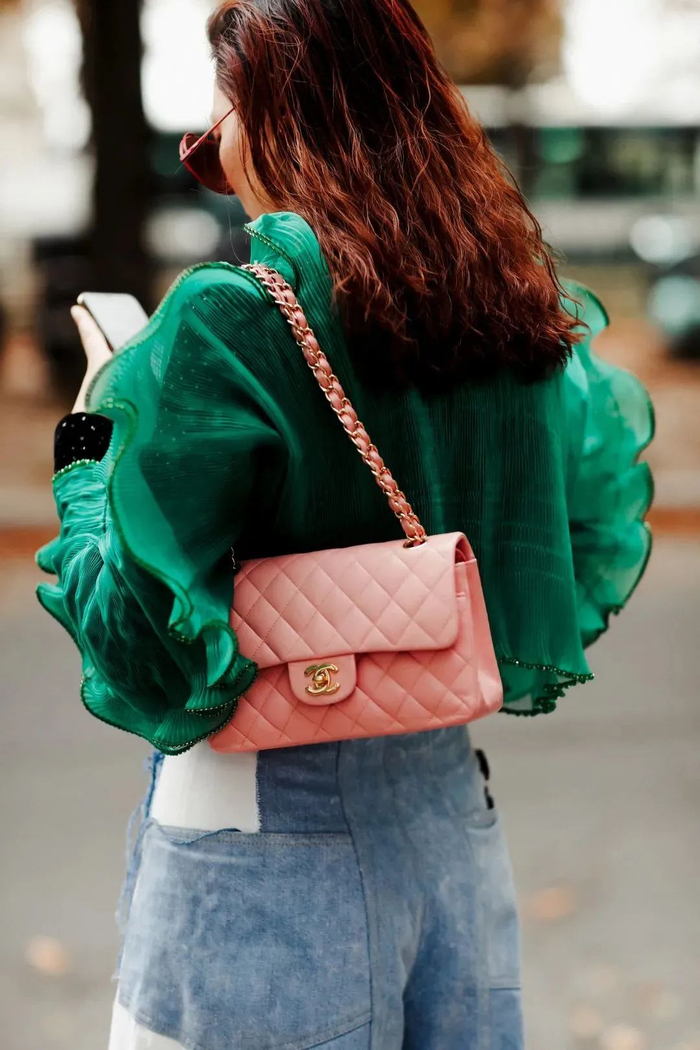 多巴胺风格将各种色彩鲜亮、饱和度高的色块穿在身上,同时搭配可爱、繁复的配饰,很考验搭配功力。