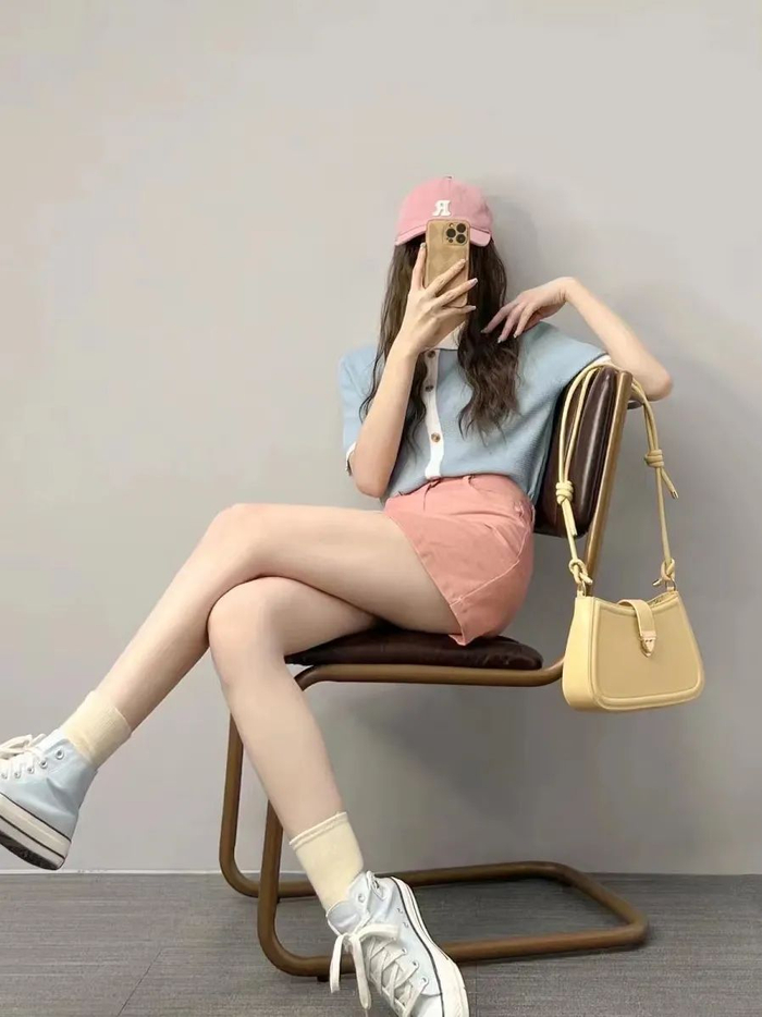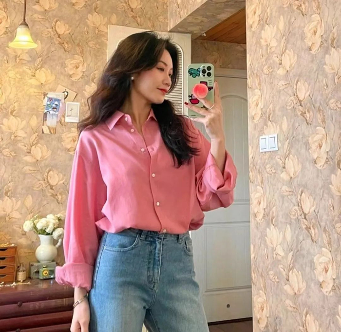 饱和度比较低的粉色,比如藕粉色、樱花粉会比较百搭、显肤色,长衬衫+短裙穿搭年轻又时髦。