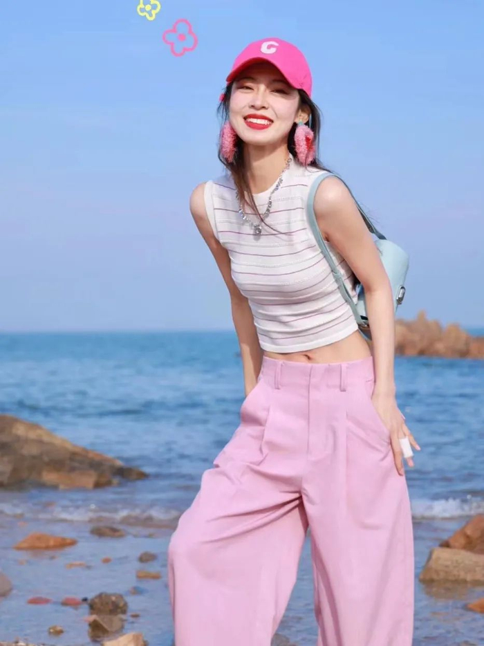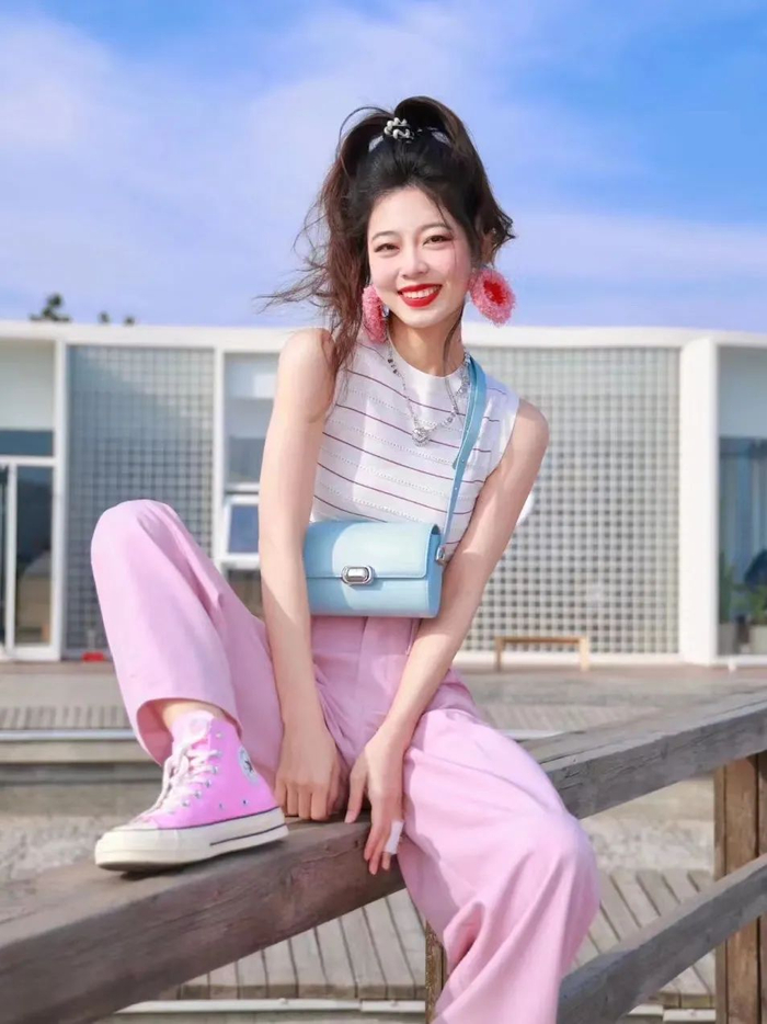 天蓝色的吊带配淡粉色的裤子太好看了,穿上就想立马去迪士尼看玲娜贝儿了。