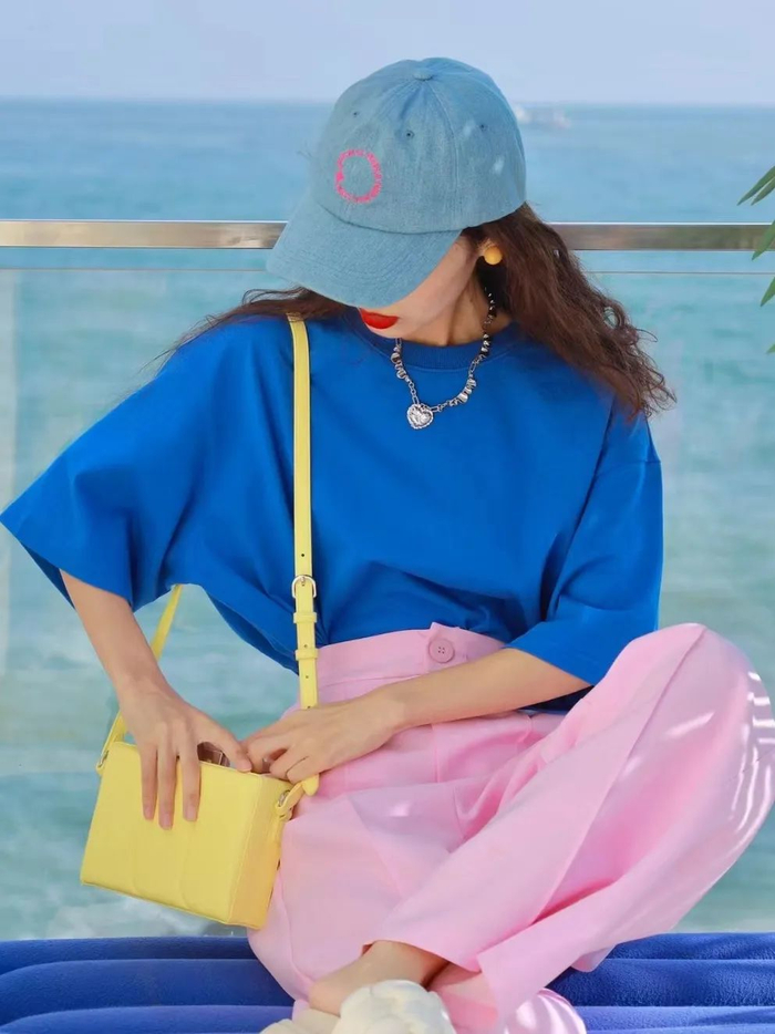那今天共和君就跟大家推荐夏天的[蓝色+粉色]搭配~减龄时髦又好看,越简单就越高级!