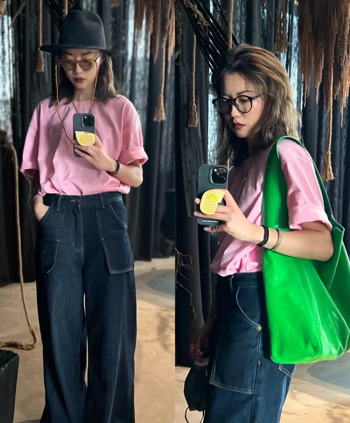 正确的搭配需要搭配饱和度更高或者更深色的牛仔下装去平衡色彩。
