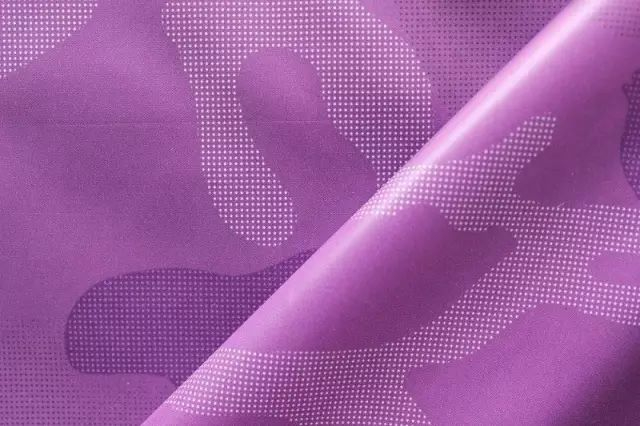为聚酰胺纤维,也是所谓的尼龙,染色性在合成纤维是较好的,穿着轻便,又有良好的防水防风性能,耐磨性高,强度弹性都很好。