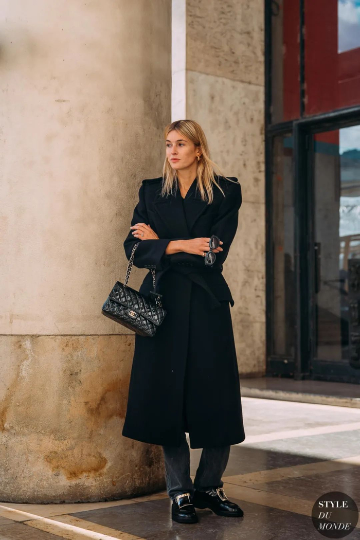 ④深色裤子:选择深色系如黑色或深蓝色,可以进一步塑造修长的视觉效果。