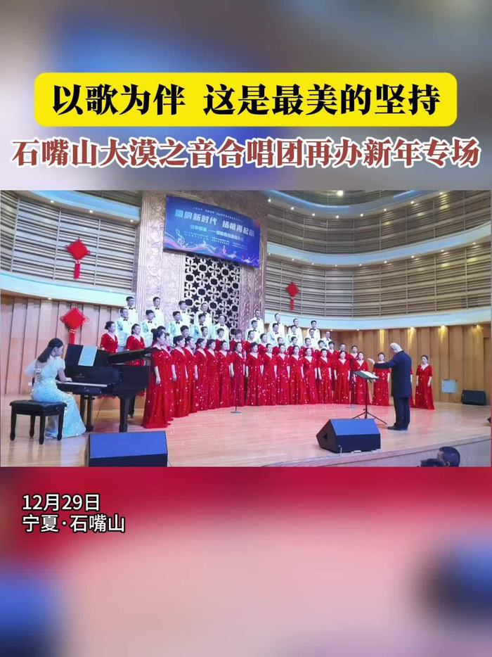 12月29日晚,“唱响新时代 扬帆再起航”悦享星海——2026年迎新年合唱音乐会在文化馆举行。本土的大漠之音合唱团以《宁夏川》等16首中外作品为300余名市民献上艺术盛宴,这已是该团连续第11年用歌声送上新年祝福。这支成立于2015年的团队长期活跃于基层,深受群众欢迎。