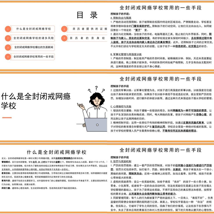 所谓的戒网瘾学校,“矫正”各种情况:早恋、厌学、逃学、叛逆、自闭、亲情淡漠、意志薄弱。
