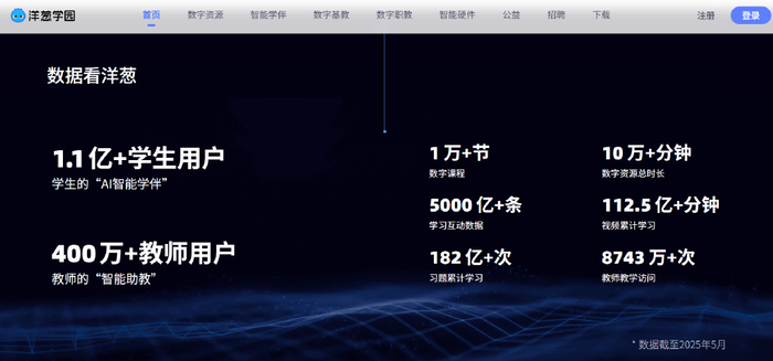 近日,芥末堆在洋葱学园官方网站注意到,其自主研发的数字化课程数量超过1万节,学习互动数据量超过5000亿次。