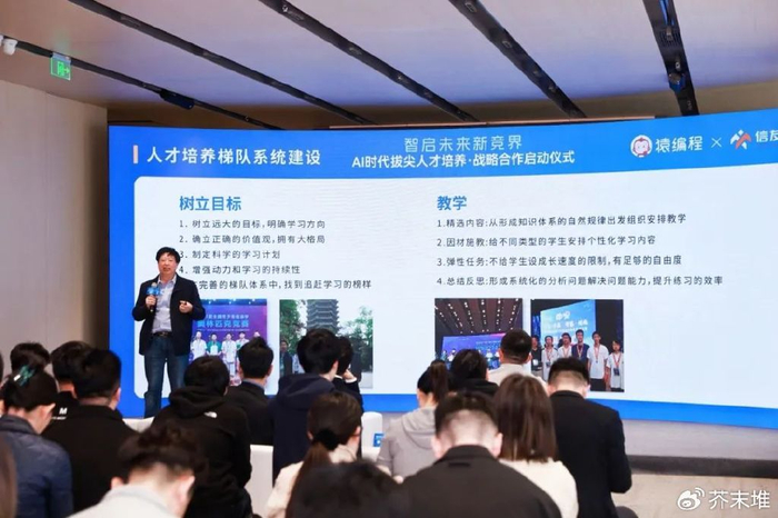 猿编程创始人李翊、信友队联合创始人徐源、智灵班公益培养计划发起人徐先友向芥末堆等媒体介绍了合作背后的更多细节。