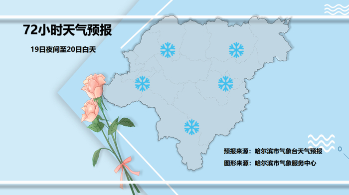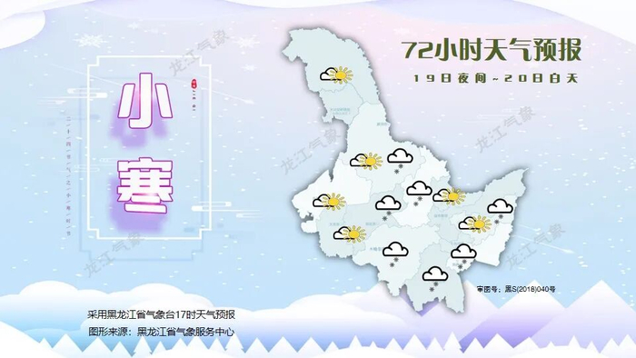 19日夜间到20日白天:黑河东部、伊春、绥化北部、哈尔滨、佳木斯、双鸭山东部、七台河、鸡西阴有小雪,其它地区多云转晴。