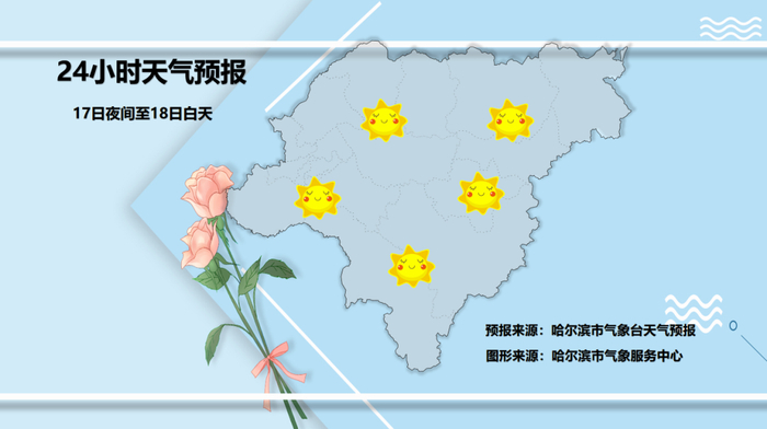 17日夜间到18日白天:大兴安岭、黑河北部、齐齐哈尔北部多云有阵雪,其它地区晴有时多云。