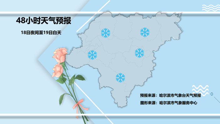 19日夜间至20日白天:全市小雪转多云;偏西风2~3级;最低气温木兰、通河、方正-30~-28℃,其他区域-27~-25℃,最高气温-19~-17℃。