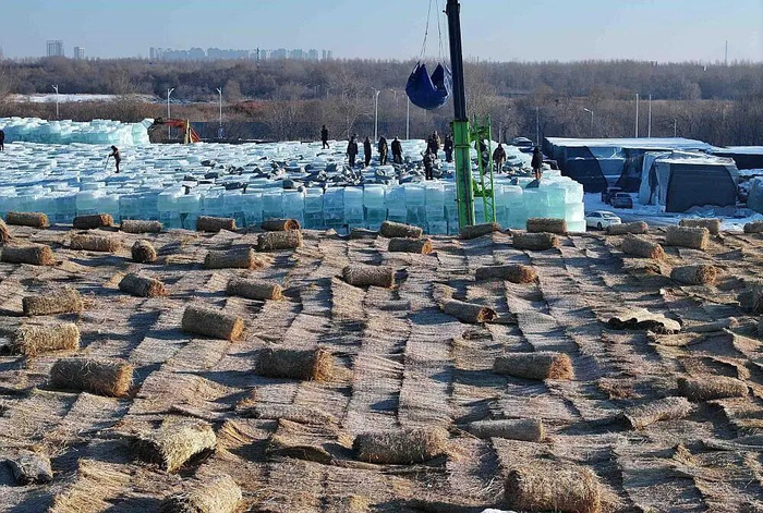 经过多年实践与创新,哈尔滨冰雪大世界已形成一套成熟完善的存冰体系。这一体系集传统储冰智慧与现代多层保温技术,为冰体打造出低温、避光、隔热且密封的储存环境。在存储期间,工作人员将科学规划冰垛堆叠方式,实施底部防潮处理,并定期维护遮盖物,确保冰块历经四季仍能保持最佳状态。