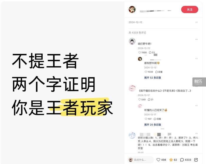 在“综艺”这个词还没有被我们在脑海中和《王者荣耀》联系在一起时,已经有不少玩家开始“自己搞综艺”了。不过,在此之前,许多和《王者荣耀》相关的节目不算是严格意义上的综艺,但是它们已经有了一些至关重要的雏形。无论综艺也好,表演也好,甚至是影视剧、小说、音乐、乃至线下旅游、周边产品、活动——玩家想要获得的最终是情绪价值:真实的情感流动、日常压力的释放,以及自我的投射。我们想看到的是与自己有关的、对自己来说熟悉又亲近的内容。